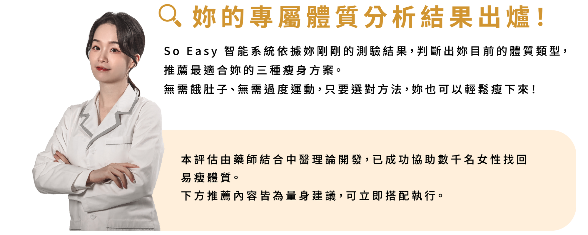 讓妳找出真正瘦不下來的原因,再搭配個人化方案與營養師陪跑,