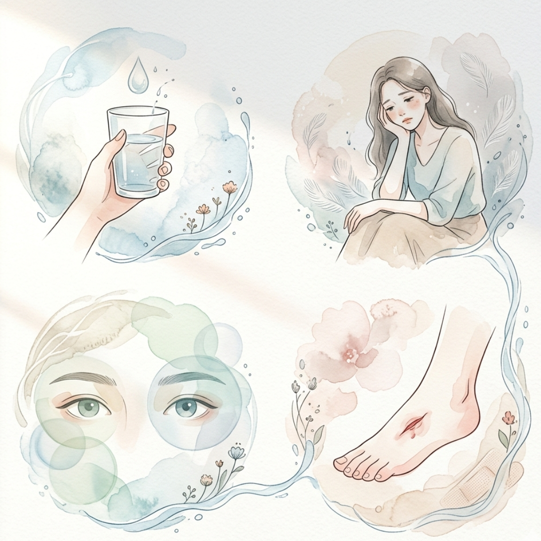 胰島素阻抗的早期症狀非常容易被當成「最近太累了」帶過:異常口渴、頻繁跑廁所,午後莫名疲倦且注意力下降,傷口癒合比以前慢,飯後特別想睡,腰圍悄悄增加但體重沒大變化,以及手腳偶發性的麻木或刺痛。