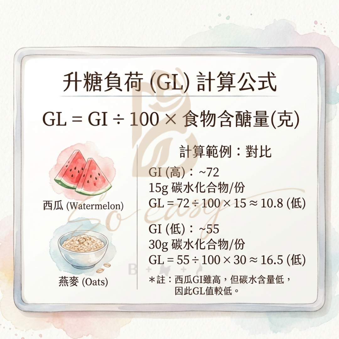 GL = GI ÷ 100 × 每份食物的含醣克數