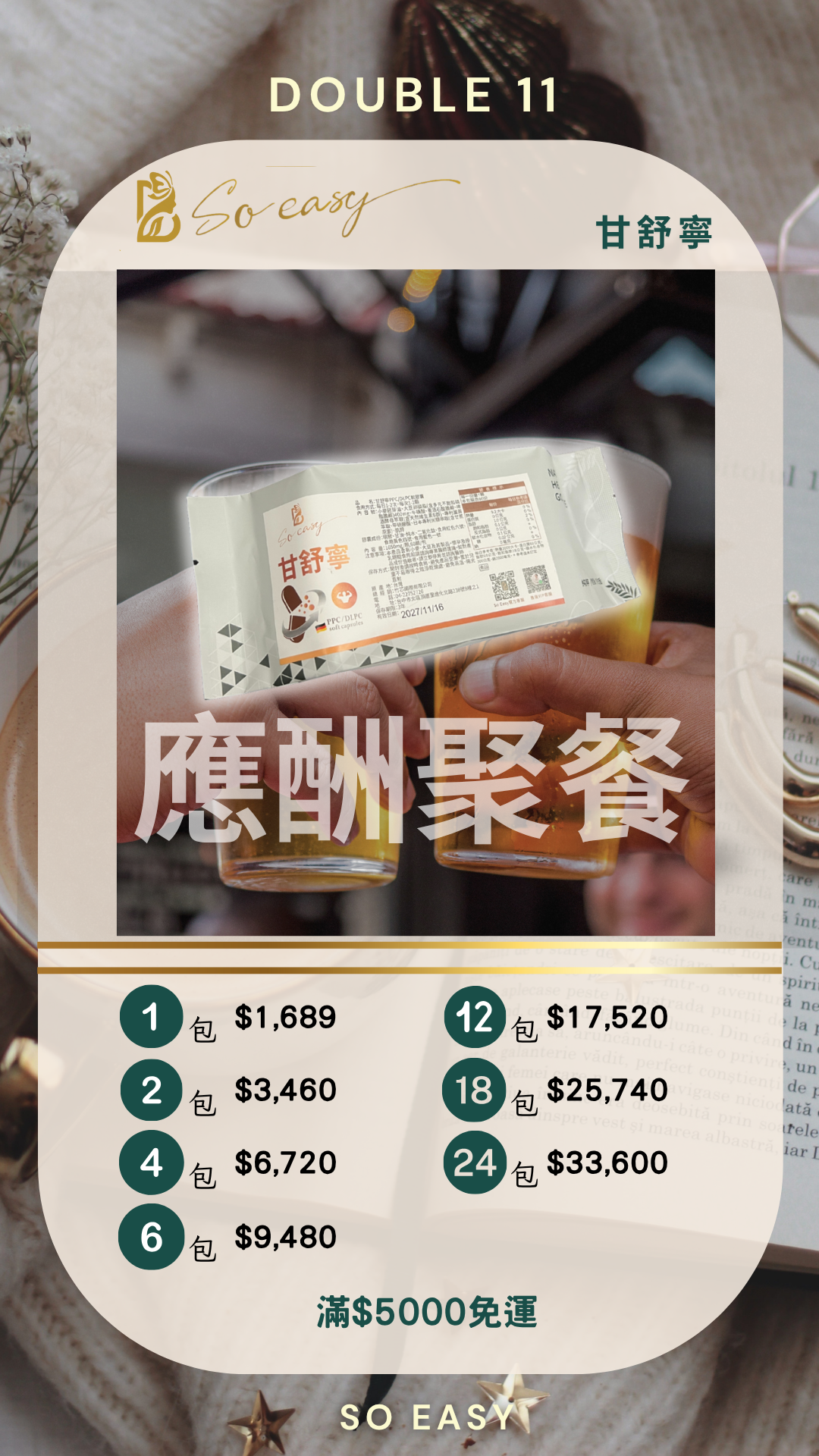 首頁 雙11活動專區 雙11活動限定*應酬聚餐-甘舒寧 特價 雙11活動限定*應酬聚餐-甘舒寧NT$1,689 – NT$33,600價格範圍:NT$1,689 到 NT$33,600 建議下單:三盒一個療程 六盒完美保養 甘舒寧熱銷搶購一空沒有現貨 預計1月到貨後陸續出貨 成為會員即可享有折扣! 甘舒寧 1包2包4包6包12包18包24包請選取一個選項1包2包4包6包12包18包24包清除 雙11活動限定*應酬聚餐-甘舒寧 數量 加入購物車 貨號: 不提供 分類: 雙11活動專區 描述 額外資訊 甘舒寧 1包, 2包, 4包, 6包, 12包, 18包, 24包 相關商品 特價 雙11活動限定*夭壽燃之-輕悅纖+甘舒寧+睡眠燃燒 NT$5,900 – NT$84,000價格範圍:NT$5,900 到 NT$84,000 選擇規格 此產品有多種款式。 可在產品頁面選擇選項 特價 雙11活動限定*順水配方 NT$3,450 – NT$18,500價格範圍:NT$3,450 到 NT$18,500 選擇規格 此產品有多種款式。 可在產品頁面選擇選項 特價 雙11活動限定*燃燒游泳圈-輕悅纖+甘舒寧 NT$4,650 – NT$61,200價格範圍:NT$4,650 到 NT$61,200 選擇規格 此產品有多種款式。 可在產品頁面選擇選項 特價 雙11活動限定*睡眠燃燒 NT$1,489 – NT$22,800價格範圍:NT$1,489 到 NT$22,800 選擇規格 此產品有多種款式。 可在產品頁面選擇選項 特價 雙11活動限定*濕濕茶 NT$330 – NT$13,750價格範圍:NT$330 到 NT$13,750 選擇規格 此產品有多種款式。 可在產品頁面選擇選項